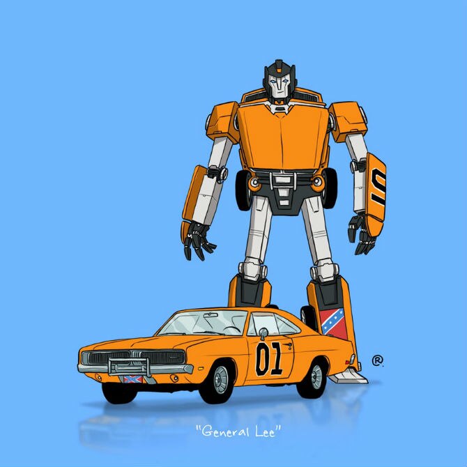 E se os carros mais conhecidos do cinema mundial pudessem virar Transformers? O designer canadense Darren Rawlings colocou a imaginação para trabalhar e criou vários sketches mostrando como cada um deles pareceriam caso se transformassem nos famosos robôs da Hasbro. Modelos como o Mach 5 de "Speed Racer", o Dodge Charger de "Dukes of Hazzard" e até o DeLorean de "De volta para o futuro" foram retratados.