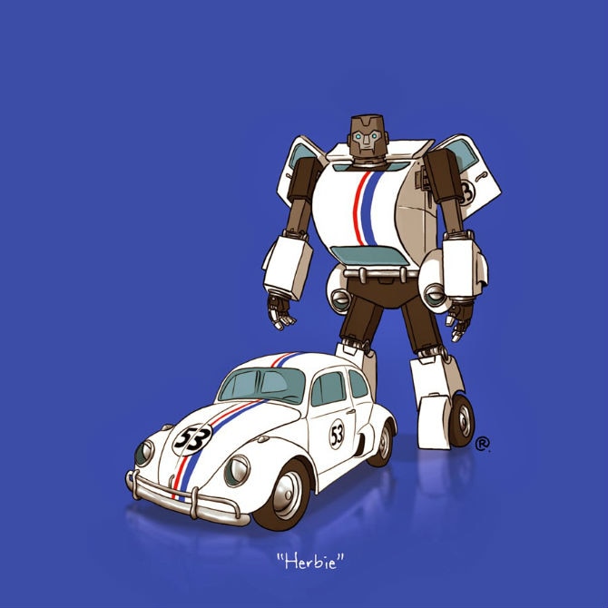 O famoso Fusquinha Herbie, do emblemático "Se meu Fusca falasse", também ganhou uma versão robô. O filme original foi lançado em 1969 e o primeiro Herbie era um Beetle americano de 1963.