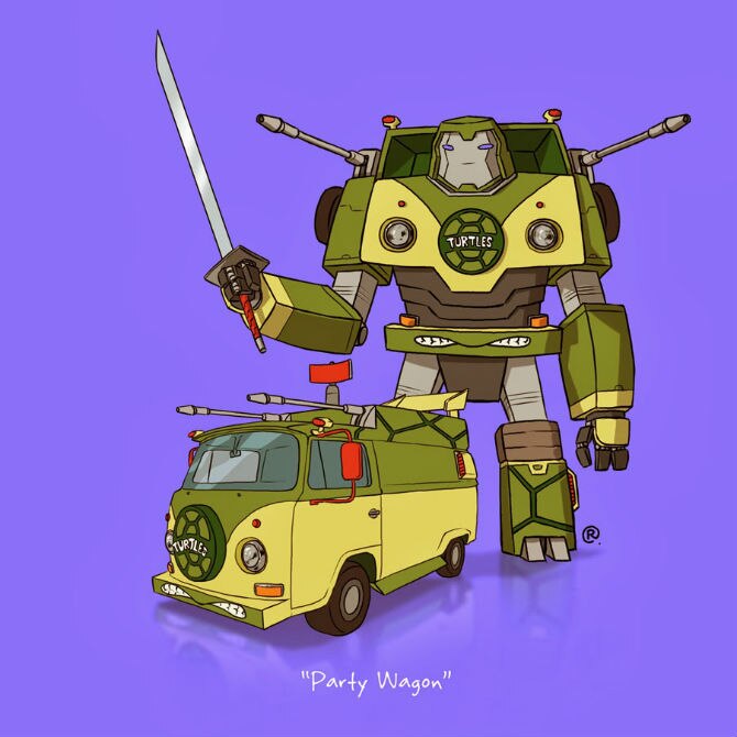 Outro modelo conhecido das telinhas a virar um Transformer foi a Party Wagon, a van das "Tartarugas Ninjas". O seriado original foi ao ar pela primeira vez em 1984.